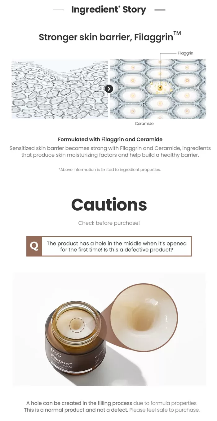 With the support of 240-hour fermentation, DR.G Filagrin Barrier Balm not only hydrates but strengthens your skin’s defense against dryness and external irritants.