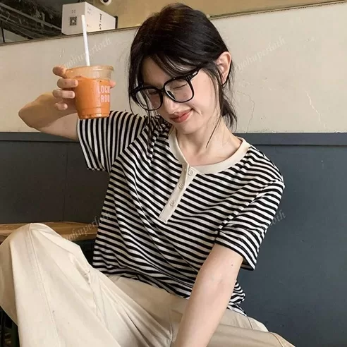 The horizontal stripe pattern gives a timeless feel, and the relaxed fit ensures ease of movement.