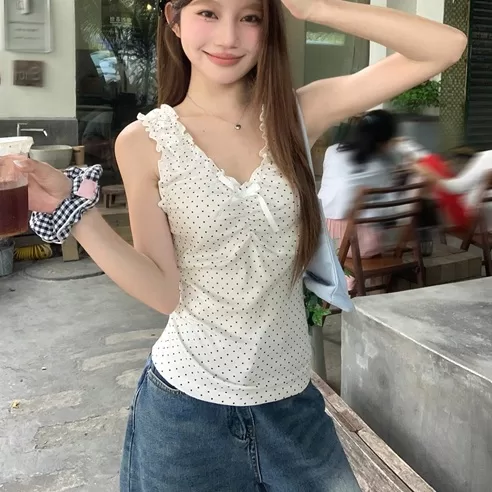 F14 STYLE Dazy Polka Dot Ribbon Sleeveless Top