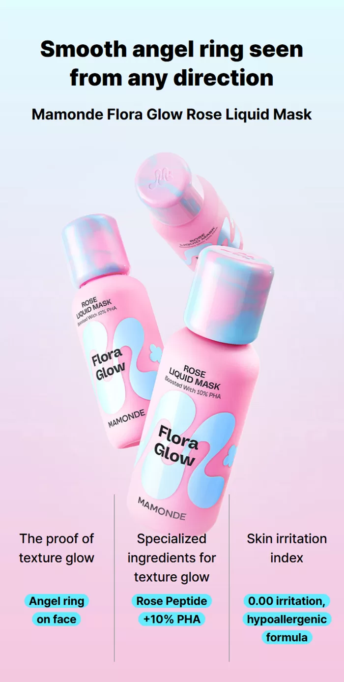 MAMONDE Flora Glow Rose Liquid Mask is recommended for those seeking an instant glow, gentle exfoliation, and a refreshing finish, or those who find their skin looks worse after makeup application. Enjoy this special skincare day and night.