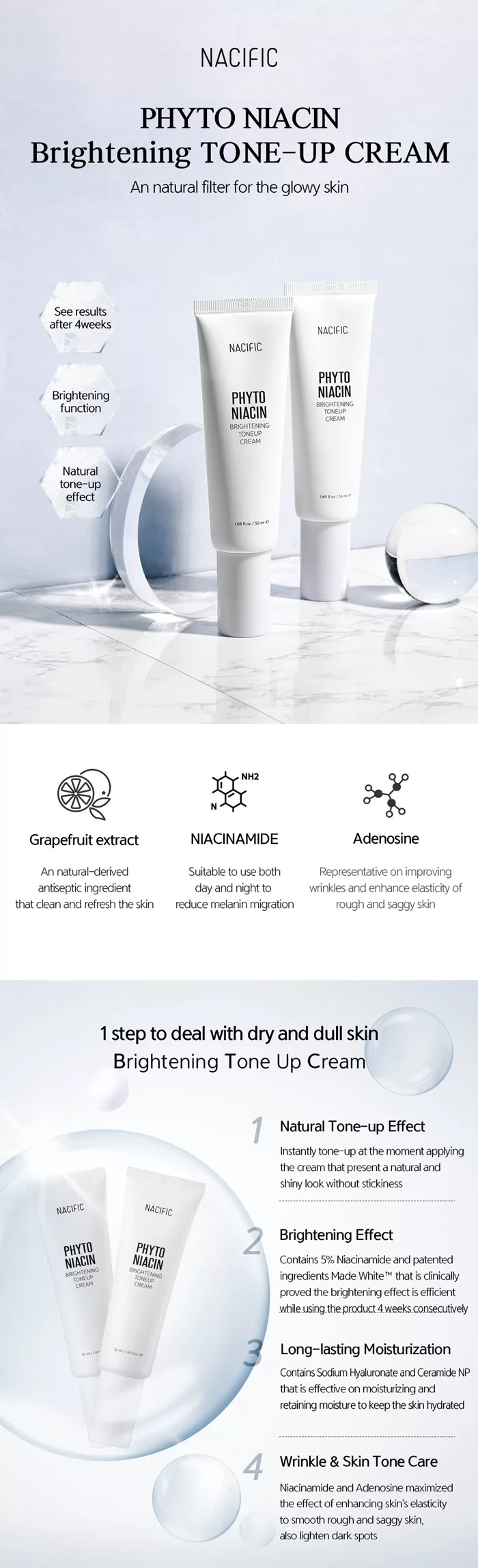 Discover the secret to flawless, radiant skin with the NACIFIC Phyto Niacin Brightening Tone Up Cream.